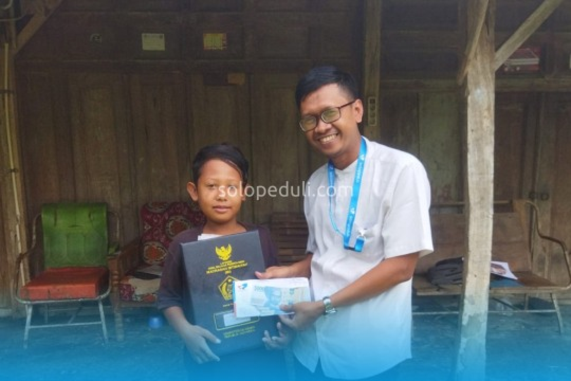 Bentuk kepedulian terhadap dunia pendidikan dan siswa putus sekolah Solo Peduli, salurkan bantuan pendidikan kepada Alif Romadhon (11). Bantuan diberikan di rumahnya di Jalan Ganggin Rt. 02, Rw.05, Karakan, Weru, Sukoharjo pada Jumat (27/1).
