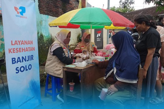 Bersamaan dengan itu Tim Medis Solopeduli yang dibantu oleh Tim SIGAB memberikan layanan pengobatan gratis di tiga titik yakni, kelurahan joyotakan dan gadingan kecamatan Grogol, serta kecamatan Mojolaban di Kabupaten Sukoharjo yang merupakan titik pengungsian.