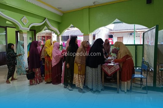 Dalam kegiatan tersebut, Bidan Klinik Ummat SOLO PEDULI, Erfi dan Adila, juga memberikan obat gratis bagi para jamaah yang hasil cek kesehatannya diatas rata-rata normal.