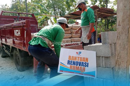 Wonogiri - SOLO PEDULI menyalurkan bantuan renovasi rumah kepada Supriyanto (48), seorang buruh serabutan yang tinggal di Batusari RT.01 RW.05, Punduhsari, Manyaran, Wonogiri, pada Senin (24/07/2023). Bantuan berupa puluhan sak semen diserahkan sebagai bentuk kepedulian terhadap kondisi rumah Supriyanto yang memprihatinkan.