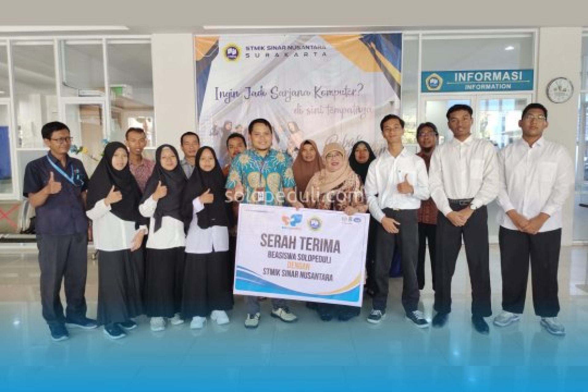 Surakarta - SOLO PEDULI kembali menggandeng STMIK Sinar Nusantara (STMIK Sinus) Surakarta dalam acara serah terima beasiswa pada Rabu (26/07/2023), yang bertujuan untuk mendukung mahasiswa dhuafa berprestasi.