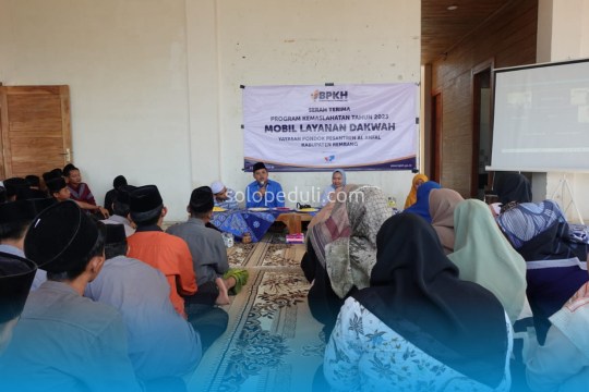 Rembang - Bersama dengan SOLO PEDULI sebagai mitra kemaslahatan, Badan Pengelola Keuangan Haji (BPKH) menyerahkan sebuah mobil layanan dakwah kepada Pondok Pesantren Al Anfal di Kabupaten Rembang, Jawa Tengah pada Senin (14/08/2023). Mobil ini merupakan bentuk dukungan untuk memudahkan mobilitas pelayanan asatidz, santri dan masyarakat di sekitar pesantren.