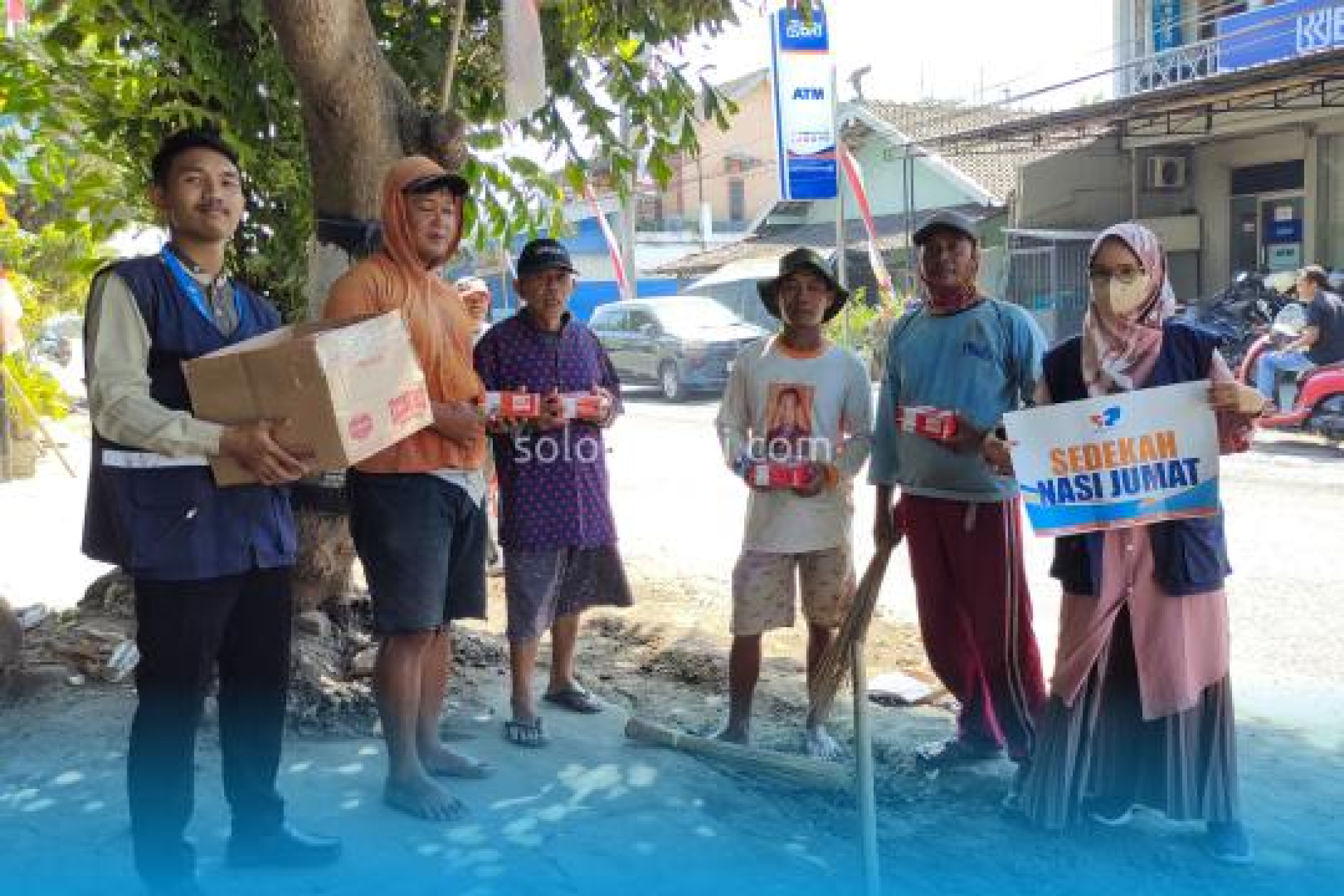 Klaten - Jumat pagi (01/09/2023), SOLO PEDULI bergerak untuk meramaikan "Jumat Berkah" dengan membagikan nasi bungkus kepada para pejuang nafkah di area sekitar Pasar Pedan, Klaten.