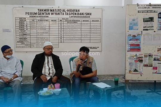 Sukoharjo - Klinik Ummat SOLO PEDULI berikan penyuluhan kesehatan bertema "Mengatasi Hipertensi di Zaman Sekarang" kepada jemaah subuh barokah Masjid Al Hidayah, di Perumahan Gentan Wyakta Taspen, Baki, Sukoharjo, pada Ahad (10/09/2023). Kegiatan ini bertujuan untuk meningkatkan kesadaran jemaah akan ancaman penyakit hipertensi karena pola hidup zaman sekarang yang susah dikontrol.
