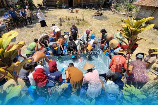 Boyolali - Setelah menderita tiga bulan kekeringan yang parah, akhirnya penduduk Dusun Ngaren RT.12 RW.03 Kalitlawah, Juwangi, Boyolali, mendapatkan bantuan air bersih sebanyak 16.000 liter dari SOLO PEDULI pada Selasa (26/09/2023). Bantuan ini menyasar kepada 47 keluarga yang berjumlah 235 jiwa.