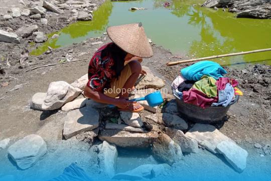 Di sana, kami menemukan sebuah sungai kecil yang airnya sudah hampir habis dan berwarna hijau lumut. Warga setempat telah membuat lubang-lubang dangkal di sekitar kubangan tersebut untuk mendapatkan. Air jernih yang muncul dari lubang-lubang tersebut digunakan untuk mencuci pakaian, mencuci piring, dan mandi. Namun, untuk kebutuhan minum, mereka harus membeli air galon karena pasokan air dari lubang-lubang tersebut sangat terbatas dan tidak layak untuk konsumsi.