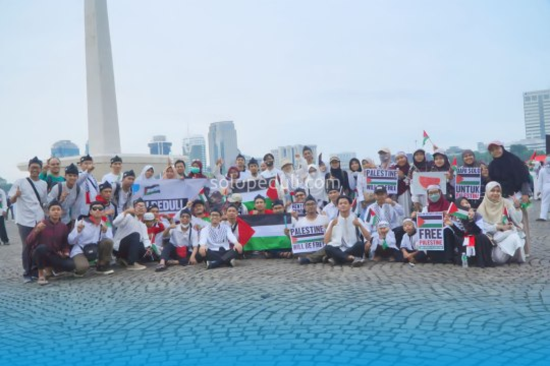 Jakarta - SOLOPEDULI turut serta dalam Aksi Aliansi Indonesia Bela Palestina di Jakarta, tepatnya di Monumen Nasional pada Ahad (05/11/2023). SOLOPEDULI membawa rombongan dari Solo sekitar 120 peserta dengan diketuai oleh Koordinator Lapangan, Harjito selaku Direktur Pendayagunaan SOLOPEDULI.