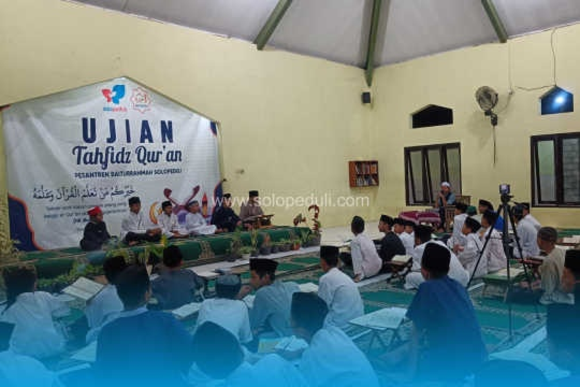 Klaten - Pondok Pesantren (Ponpes) Baiturrahmah SOLOPEDULI Klaten setiap bulannya memiliki agenda rutin mengadakan Ujian Kenaikan Juz (UKJ) bagi para santri penghafal Al-Quran. Kegiatan rutin UKJ, yang diadakan setiap bulan pada pekan ke-4 ini, menjadi ajang bagi para santri untuk menunjukkan keahlian hafalan mereka di depan publik. Pada Bulan Oktober, UKJ diadakan menjadi awal bulan pada Selasa, (07/11/2023).