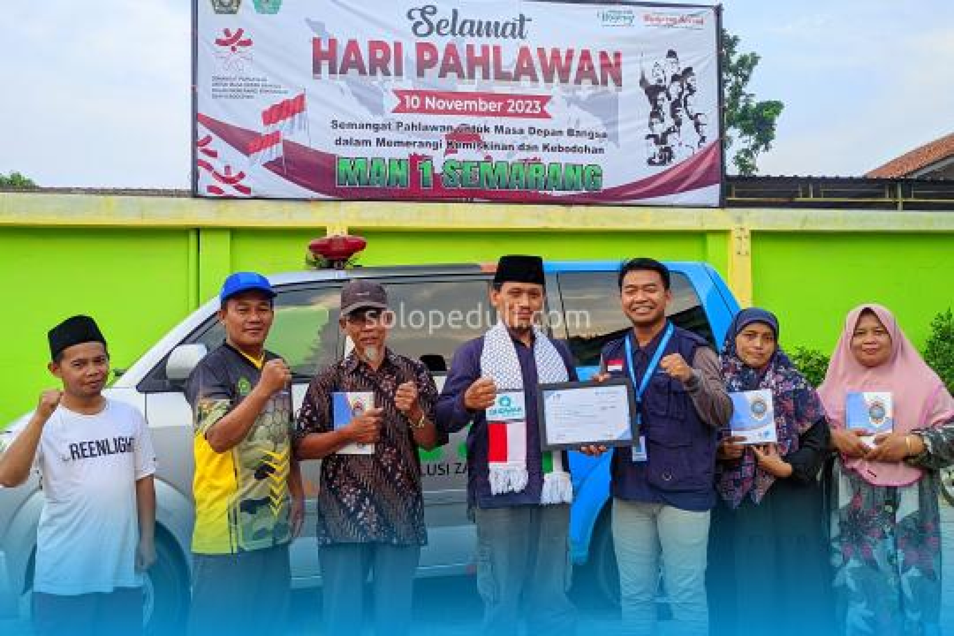 Semarang - SOLOPEDULI menerima Penggalangan Donasi Palestina dari Badan Koordinasi Lembaga Pendidikan Al-Qur'an (BADKO LPQ) Kecamatan Suruh Kabupaten Semarang sebesar 25.569.000. Penyerahan dilakukan di MAN 1 Semarang dan dilaksanakan pada hari Sabtu (11/11/2023). Donasi langsung diserahkan oleh Ketua BADKO LPQ Kecamatan Suruh, Bapak Rohib Hirzi, kepada Kepala Cabang SOLOPEDULI Boyolali, Dhiya’ Uddin Iqbal.