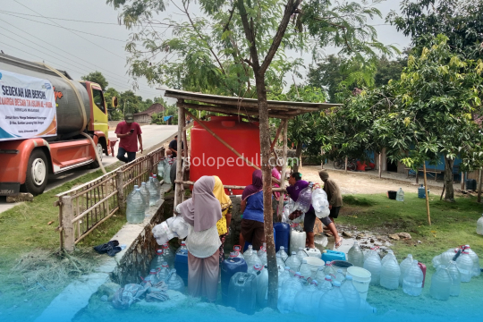 Sragen - Curah hujan di bulan ini masih sedikit akibat fenomena El Nino yang berkepanjangan di Indonesia. Beberapa wilayah di Solo Raya bahkan masih ada yang mengalami kekeringan hingga menyebabkan krisis air bersih. Contohnya saja Dukuh Kowang, Desa Ngargotirto, Kecamatan Sumberlawang, Kabupaten Sragen. SOLOPEDULI merespon keadaan ini dengan mengirimkan bantuan air bersih ke lokasi sejumlah 16.000 liter pada Kamis (23/11/2023).