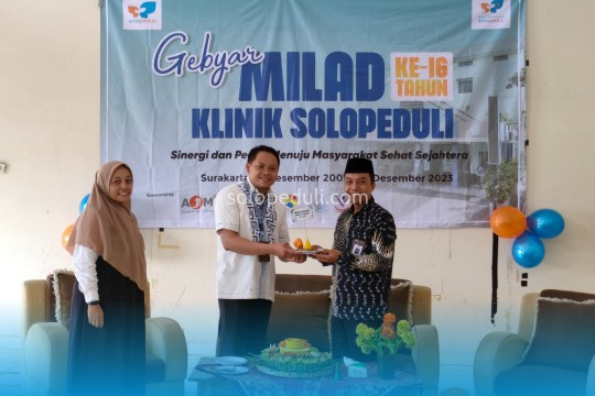 Surakarta - Klinik Rawat Inap Solopeduli sukses menggelar acara Tasyakuran Milad ke-16 di Aula Lantai 3 Klinik Rawat Inap Solopeduli, Jebres, Surakarta, pada Jumat (29/12/2023). Acara tersebut menghadirkan tokoh-tokoh penting, termasuk Pengurus Ikatan Dai Indonesia (IKADI) Solo; Direktur Utama SOLOPEDULI, Sidik Anshori, S.Sos.I; Direktur Pendayagunaan SOLOPEDULI, Harjito, S.Pd.I; Manajer Kesehatan, Megawati Nurjanah, A.Md; karyawan Klinik Ummat Solopeduli, dan seluruh karyawan Klinik Rawat Inap Solopeduli, yang turut berbagi visi dan komitmen untuk Klinik Rawat Inap Solopeduli ke depannya.