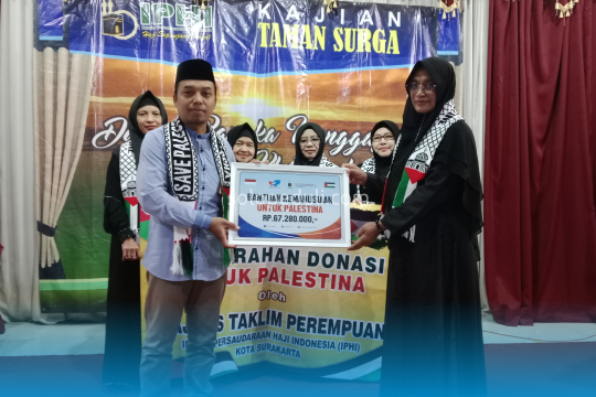 Majelis Taklim Perempuan Ikatan Persaudaraan Haji Indonesia (MTP IPHI) Surakarta telah menyerahkan donasi kemanusiaan untuk Warga Sipil Palestina melalui SOLOPEDULI. Penyerahan donasi dilaksanakan di Gedung IPHI Kota Surakarta, Jl. Srinarendo No.1 Baron, pada hari Jumat malam (05/01/2024).