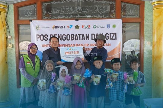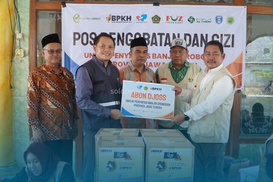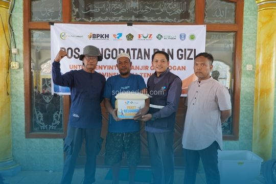Grobogan - Dalam upaya kolaboratif, SOLOPEDULI dan Kementerian Agama Republik Indonesia inisiatif komprehensif menggelar lima aksi kemanusiaan untuk membantu korban pasca banjir di Grobogan (17/02/2024). Acara ini diselenggarakan di Masjid Fuaza, Desa Kemiri, Kecamatan Gubug, Kabupaten Grobogan. Lima aksi kegiatan antara lain yaitu, pembagian PKB, pembagian paket gizi, pengobatan gratis, pembagian sapi berbentuk Abon Djoss, hingga sesi trauma healing.