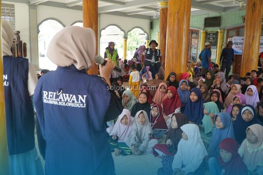 SOLOPEDULI menyelenggarakan sesi trauma healing yang diisi dengan kegiatan mendongeng, permainan, dan bernyanyi bersama. Sesi ini, dipimpin oleh dua mahasiswa penerima beasiswa SOLOPEDULI. Trauma healing yang dilakukan bertujuan membantu anak-anak untuk mengekspresikan diri dan pulih dari dampak emosional banjir. Partisipasi hidup dan ekspresi ceria anak-anak mencerminkan semangat mereka untuk membangun kembali kehidupan mereka dengan dukungan SOLOPEDULI.