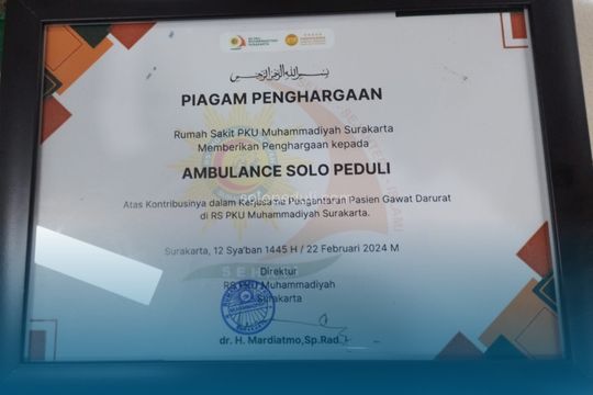 (dok.humas: piagam penghargaan untuk ambulance SOLOPEDULI)
