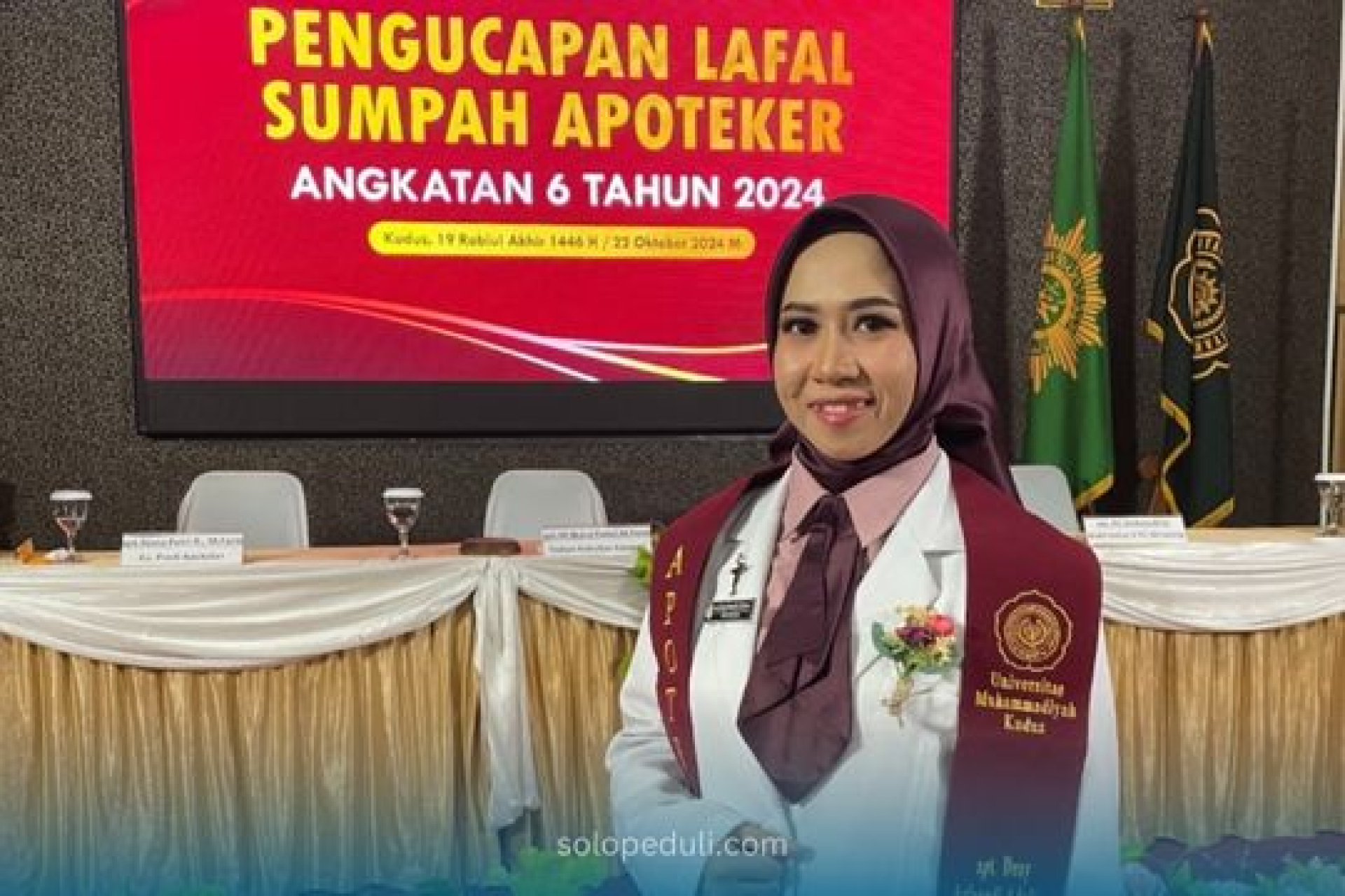 Solopeduli dengan penuh kebanggaan mengumumkan keberhasilan apt. Desy Arisandi Adelia, M.Farm., penerima beasiswa asal Graha Khayangan, Palu, Sulawesi Tengah, yang telah berhasil menuntaskan pendidikan profesi apoteker di Universitas Muhammadiyah Kudus. Desy, penyintas bencana gempa, tsunami, dan likuifaksi yang melanda Palu pada tahun 2018, kehilangan kedua orang tuanya dalam bencana tersebut. Namun, berkat dukungan dari Solopeduli, ia mampu menyelesaikan program pendidikan profesi selama dua tahun (2022-2024) dan resmi menjalani sumpah profesi apoteker pada Selasa, 22 Oktober 2024.
