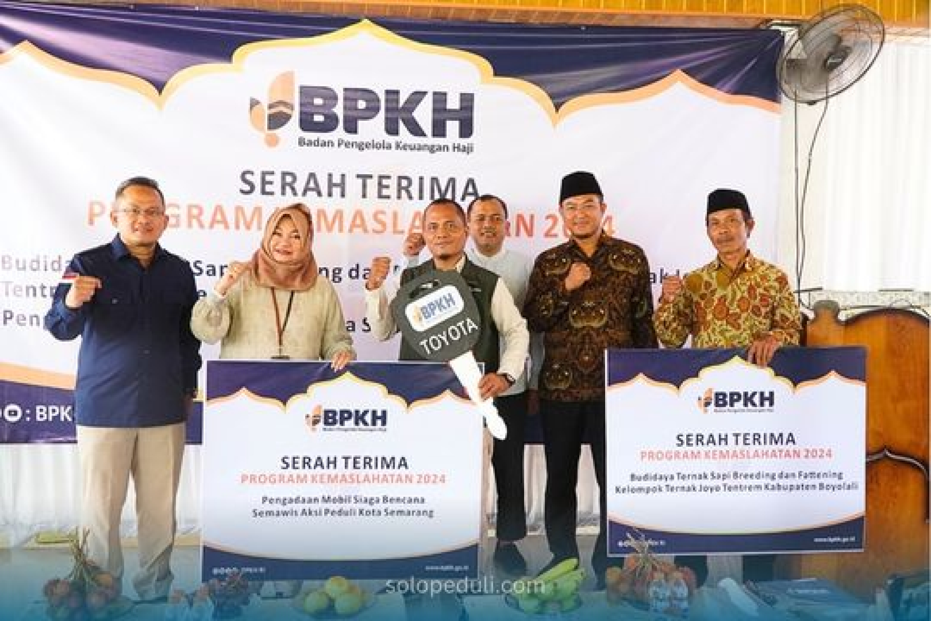 Badan Pengelola Keuangan Haji (BPKH) melalui SOLOPEDULI, sebagai mitra kemaslahatannya, melaksanakan serah terima dua program sekaligus di Desa Kembangsawit, RT 06 RW 01, Tempursari, Sambi, Boyolali, pada Selasa (24/12/2024). Program yang disalurkan meliputi Kemaslahatan Budidaya Ternak Sapi Breeding dan Fattening untuk Kelompok Ternak Joyo Tentrem Boyolali serta Pengadaan Mobil Siaga Bencana untuk Semawis Aksi Peduli Kota Semarang.