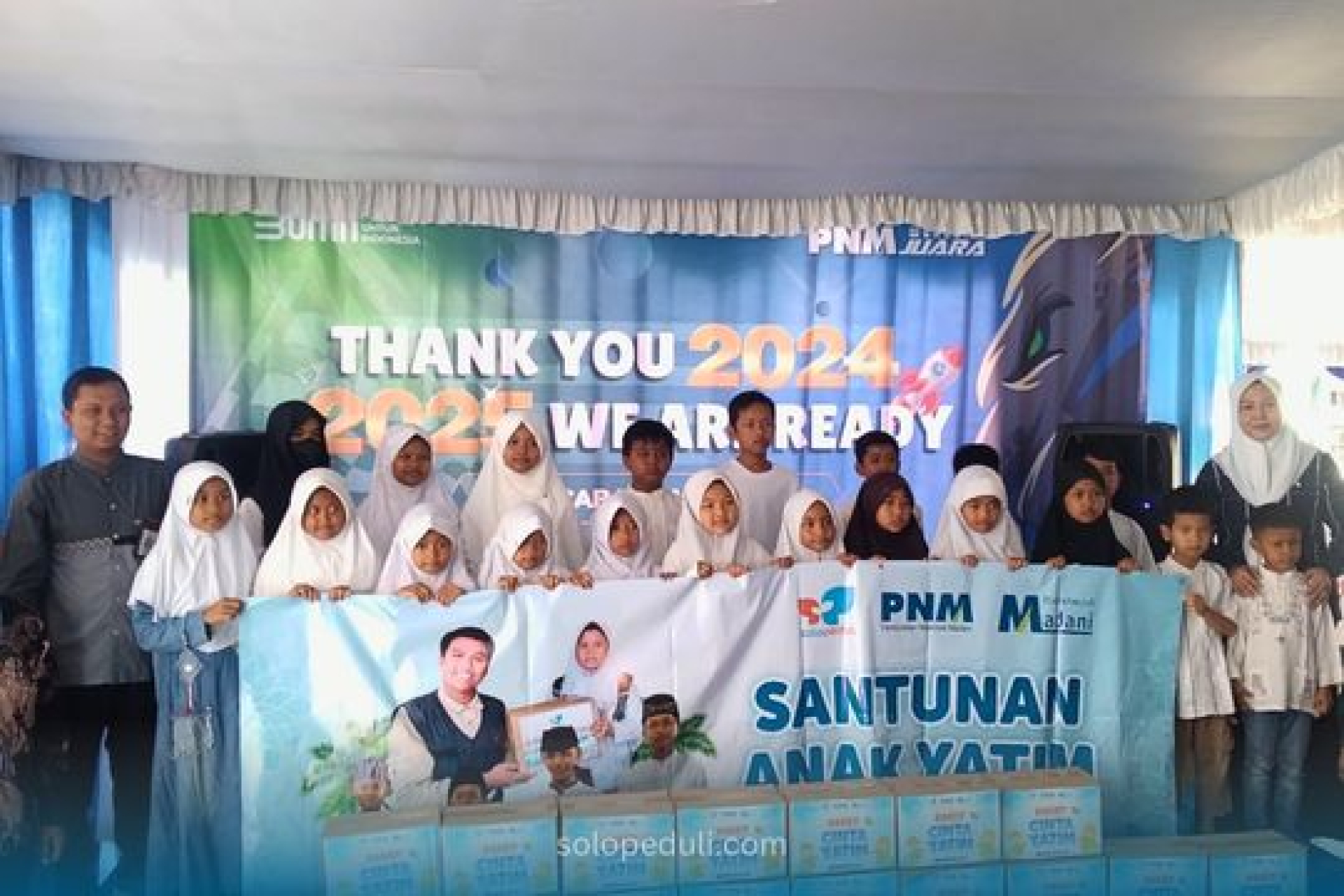 PNM Cabang Wonogiri dan Baitul Maal Madani mengawali tahun 2025 dengan berkolaborasi bersama SOLOPEDULI, membagikan Bingkisan Cinta Yatim kepada anak-anak yatim di wilayah Wonogiri. Kegiatan ini dilaksanakan di Kantor PNM Cabang Wonogiri, Jl. Jenderal Sudirman No. 210, Donoharjo, Wuryorejo, Kecamatan Wonogiri, Kabupaten Wonogiri, Jawa Tengah, pada Jumat (3/1/2025).