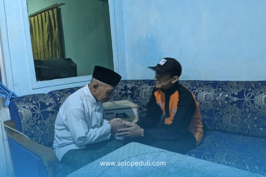 dok.humas: Bantuan Abon Djoss yang disalurkan oleh Soni, Komandan Sigab Solopeduli kepada Pak Ropin, tokoh masyarakat yang ada di Desa Kasimpar, Petungkriyono, Pekalongan