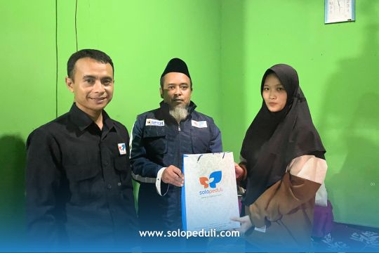 dok.humas: Dukungan SOLOPEDULI juga memberikan bingkisan dan Al-Quran terjemah kepada Stevy