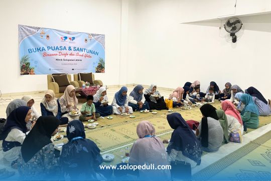 Unit Program Solopeduli - Klinik Rawat Inap Solopeduli (Klinik Solopeduli) mengadakan acara santunan untuk anak-anak yatim dan keluarga duafa serta iftar bersama di Klinik Solopeduli lantai 3, Jebres, Surakarta, pada Rabu, (19/03/2025).