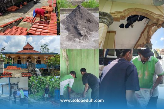 Sementara itu, di Dusun IV, Sambi, Kecamatan Sambi, Boyolali, Masjid Jami' Al Muttaqin juga mengalami kerusakan pada bagian atap yang menyebabkan kebocoran saat hujan turun. Warga sekitar secara swadaya berupaya memperbaikinya, namun terbatasnya bahan bangunan menjadi tantangan tersendiri. Melalui program yang sama, SOLOPEDULI memberikan bantuan berupa pasir guna menunjang proses renovasi atap.