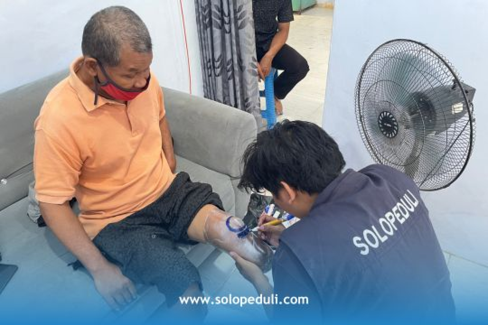 dok.humas: Pak Triyanto di lokasi pemasangan kaki palsu didampingi oleh tim SOLOPEDULI (08/07/2025)