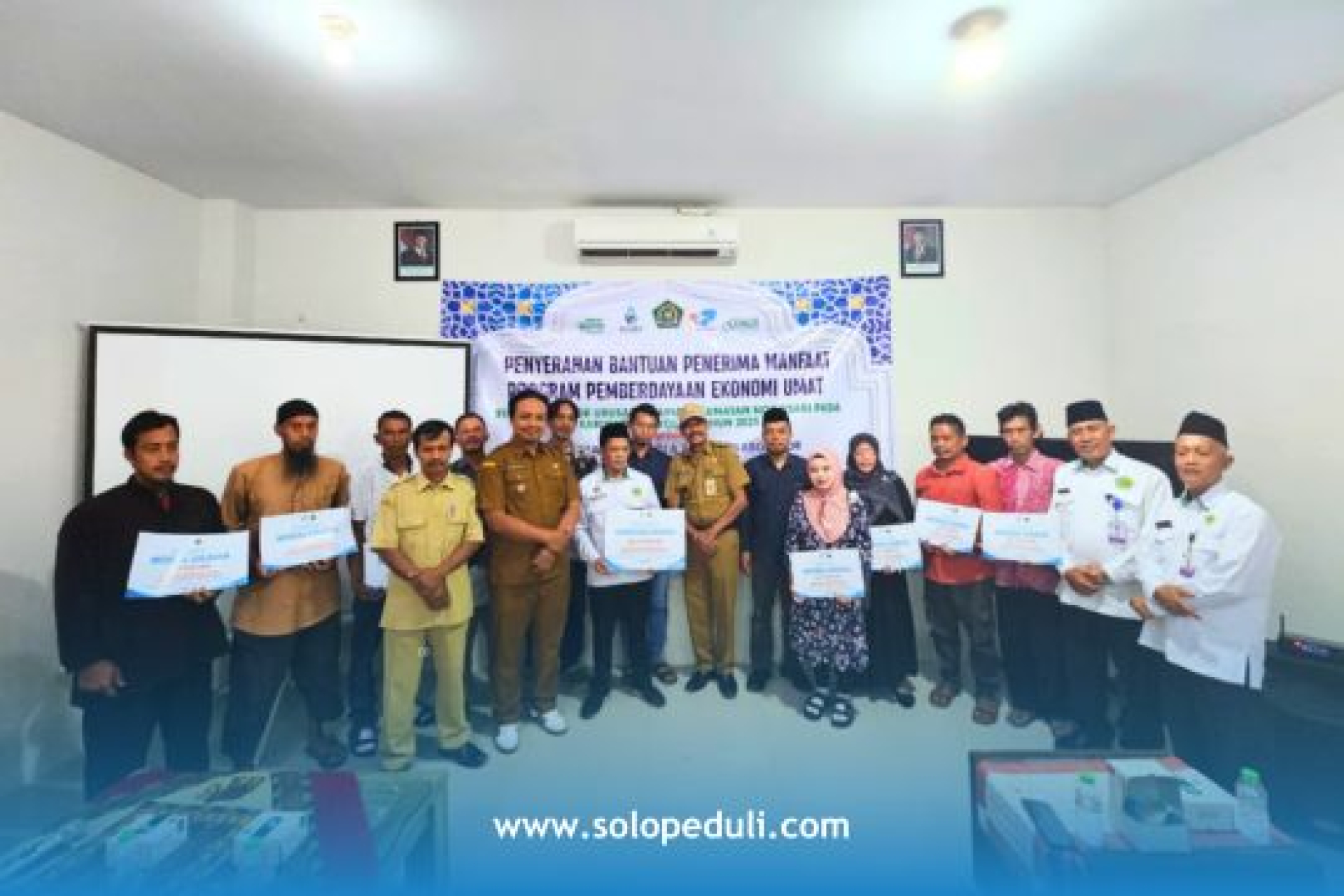 SOLOPEDULI bersama Kementerian Agama (Kemenag) Kabupaten Boyolali resmi menyerahkan bantuan modal usaha kepada 10 penerima manfaat melalui Program Pemberdayaan Ekonomi Umat (PEU). Acara serah terima dilaksanakan di Ruang Meeting Lantai 1 Kantor Pusat SOLOPEDULI, Selasa (16/9/2025), dengan dihadiri jajaran pejabat Kemenag, Kepala KUA Nogosari, perangkat desa, serta penerima manfaat.