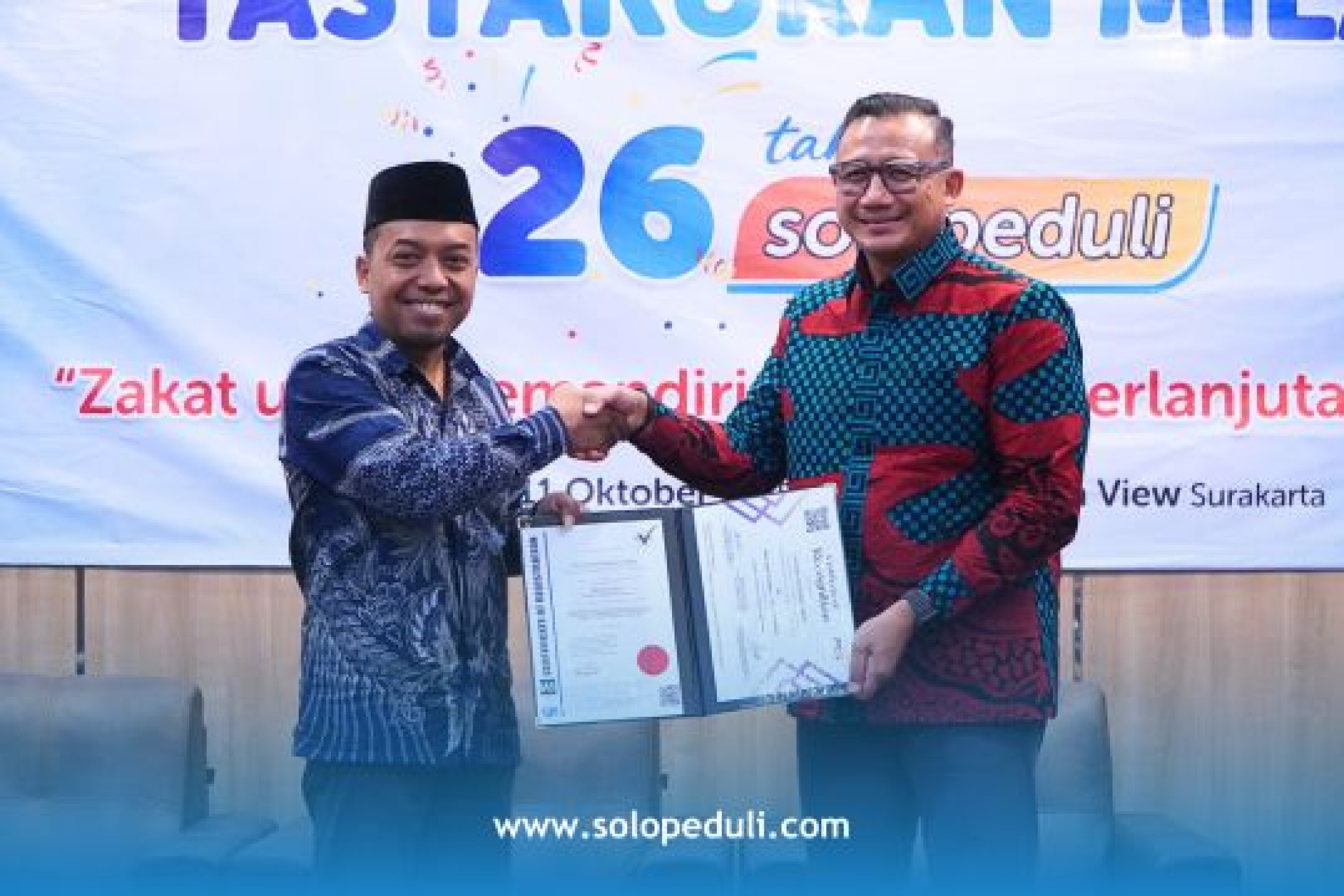 Dalam momentum Tasyakuran Milad ke-26 yang digelar di Hotel Sala View Surakarta pada Sabtu (11/10/2025), SOLOPEDULI menerima hasil Audit Eksternal Resertifikasi ISO 9001:2015 sebagai bukti komitmen lembaga dalam mempertahankan tata kelola yang profesional dan berstandar internasional sejak tahun 2019, sehingga tahun ini adalah tahun ke-7 SOLOPEDULI menerapkan ISO 9001:2015.