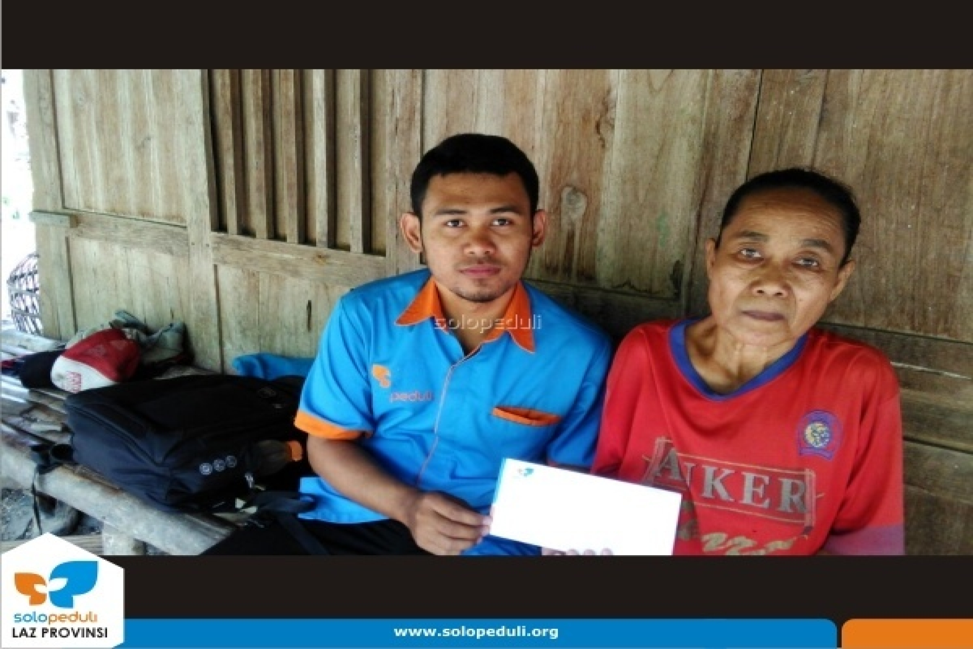 Tim Solopeduli mengunjungi Ibu Painem di rumahnya, Selorejo RT 01/ RW 1 Sirnoboyo, Giriwoyo, Wonogiri, Kamis (17/11). Melalui program "Santunan Kesehatan", Solopeduli hadir memberikan bantuan uang tunai untuk membantu biaya pengobatan Ibu Painem. (Eko/Yofi)